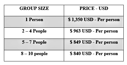 The price quoted is based on double occupancy. For odd numbers, one single occupancy has already been taken into account. By default we divide the total price evenly between all participants. If you wish, we can calculate separate prices for those with double occupancy and the person with single occupancy.