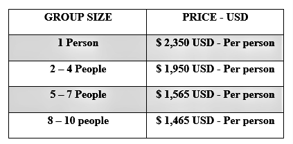The price quoted is based on double occupancy. For odd numbers, one single occupancy has already been taken into account. By default we divide the total price evenly between all participants. If you wish, we can calculate separate prices for those with double occupancy and the person with single occupancy.