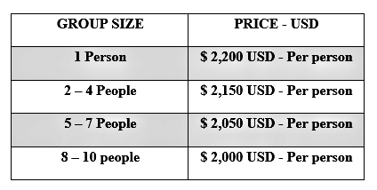 The per person prices below are based on the number of people booking the trip together.
